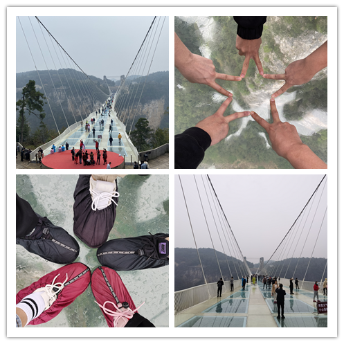 第二天,伴随着淅沥沥的小雨,我们来到了【张家界大峡谷景区】游览【云天渡玻璃桥】,这是世界首座斜拉式高山峡谷玻璃桥,并创下世界最高最长玻璃桥、首次使用新型复合材料建造桥梁等多项世界之最。走在 300 米高空的玻璃桥上,仰望蓝天白云,俯瞰溪流潺潺,似漫步云端,超脱尘世,忘却凡间。